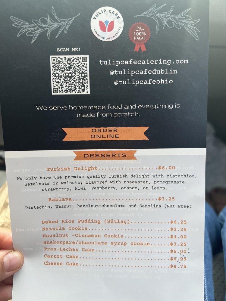 Welcome to Tulip Cafe, a delightful dessert haven located at 2926 Hayden Run Plaza, Columbus, OH. This woman-owned gem specializes in an array of sweet treats and aromatic coffees, perfect for any time of the day. The menu features enticing options like Baked Rice Pudding, a rich Turkish classic that melts in your mouth, and the moist Carrot Cake topped with homemade cream cheese frosting. Don’t miss the decadent Cheesecake adorned with chocolate or homemade caramel.